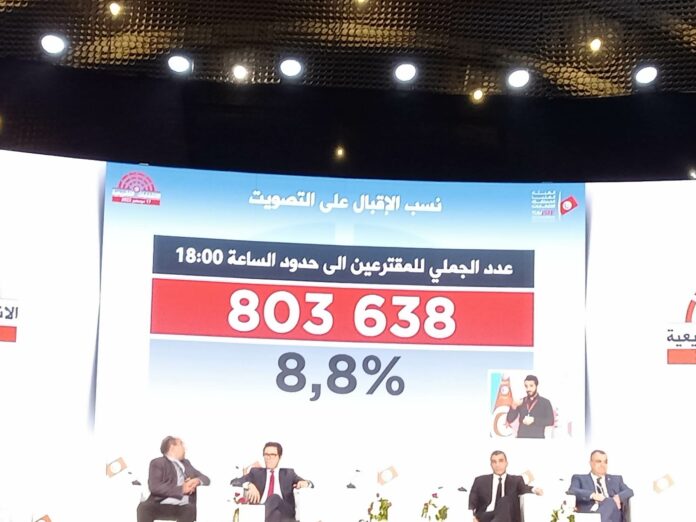 أفادت الهيئة العليا للانتخابات في تونس أنّ نسبة الاقتراع بالانتخابات التشريعية بلغت 8.8% من مجموع الناخبين حتى الساعة السادسة بتوقيت تونس.