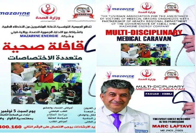 تنظم الجمعية التونسية لإعانة المتضررين من الأخطاء الطبية بالشراكة مع الادارة الجهوية للصحة بولاية قبلي و شركة مازارين الطاقية، الساعية للانفتاح على محيطها بالجهة، قافلة صحية متعددة الاختصاصات يوم السبت 5 نوفمبر القادم بداية من الساعة الثامنة بمعتمدية الفوار من ولاية قبلي. و تضم القافلة المذكورة عدة أطباء من مختلف الاختصاصات مثل أمراض العيون و أمراض المعدة و أمراض الاطفال و الولدان و الأمراض الجلدية و أمراض الكلى و أمراض النساء و العقم و الطب الباطني و جراحة العظام و الجراحة العامة و أمراض القلب. و قد أكد الدكتور عصام العمري رئيس الجمعية التونسية لإعانة المتضررين من الأخطاء الطبية، أن هذه الجمعية تأسست سنة 2012 وهي الوحيدة من نوعها في تونس و غاياتها غير ربحية و لا تحمل أي إنتماء سياسي.. مضيفا أنها ما إنفكت تنظم القوافل الصحية في مختلف ربوع البلاد التونسية لإعانة أهالي المناطق النائية وترشيدهم. وقد أضاف الدكتور العمري في هذا السياق : »كل الإختصاصات ستكون موجودة خلال القافلة التي سننظمها يوم السبت 5 نوفمبر بمعتمدية الفوار بولاية قبلي. وهذه القافلة ستكون من دون شك من أكبر القوافل التي تنظمها الجمعية نظرا لعدد الأطباء الذي سيتواجون على عين المكان في الفوار. » كما أكد محدثنا على أن القافلة ستتميز بمشاركة الدكتور الأمريكي مارك لفتافي، أحد أكبر الجراحين في العالم في إختصاصات الجراحة العامة مثل زراعة الكبد و الكلى و البنكرياس . وعن شراكة الجمعية مع مؤسسة مازارين الطاقية في تنظيم هذه القافلة قال الدكتور العمري: « إن هذه الشراكة جد مثمرة و تخدم الوسط الإجتماعي الذي تنشط فيه المؤسسة. و هي من شأنها أن تساهم في حللة عدة إشكاليات لأهالي الجهة و هذا ما يتماشى تماما مع أهداف الجمعية. »