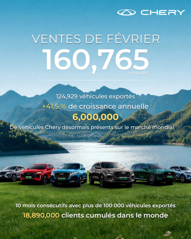 Chery poursuit son expansion internationale avec des performances remarquables en février 2026.