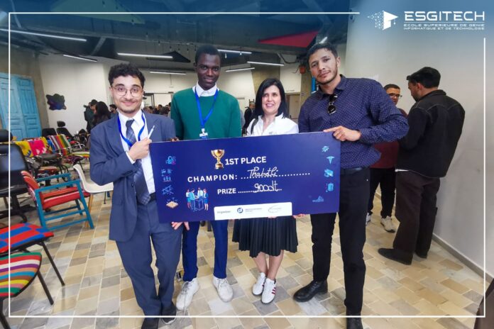 Le message souligne : « À travers ce défi, ils ont su illustrer avec brio leur talent, leur esprit d’équipe ainsi que leur capacité à transformer des idées innovantes en solutions concrètes. Cette distinction témoigne de l’engagement constant d’ESGITECH Université à former les futurs leaders du secteur technologique. »